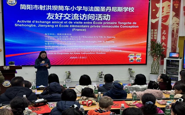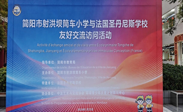 四川教育新闻成都1月21日讯(徐瑞莹 通讯员 射洪坝筒车小学)2026年1月20日,简阳市射洪坝筒车小学迎来了远道而来的客人——法国圣丹尼斯学校师生代表。他们跨越山海,踏入书香伴着药香的筒车校园,开启了一场沉浸式的中国文化探寻之旅。