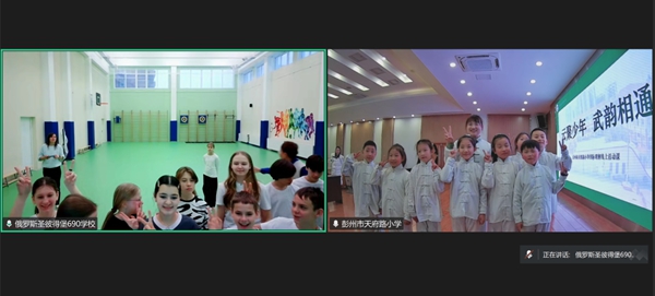 四川教育新闻成都1月26日讯(徐瑞莹 通讯员 符廷 尹慧)2026年1月22日,彭州市天府路小学“熊猫走世界”系列课程温情启幕!隔着屏幕,彭州市天府路小学武术社团的孩子们与俄罗斯圣彼得堡690学校的小伙伴们云端相聚,以武术为媒开启跨洋之约,让国际理解教育在拳脚互动中落地生根,让文明共鸣跨越亚欧大陆。