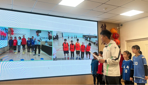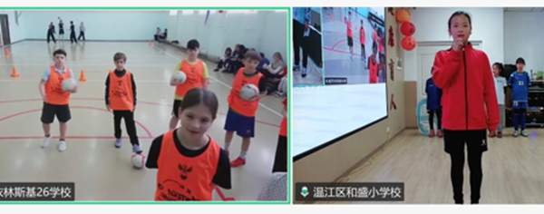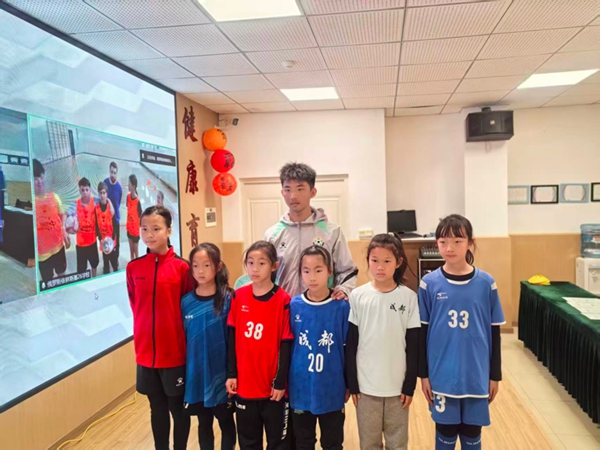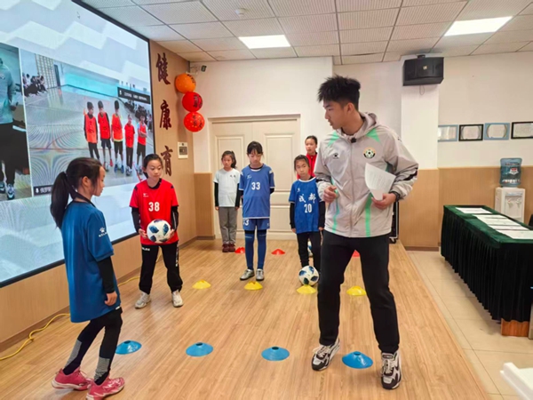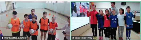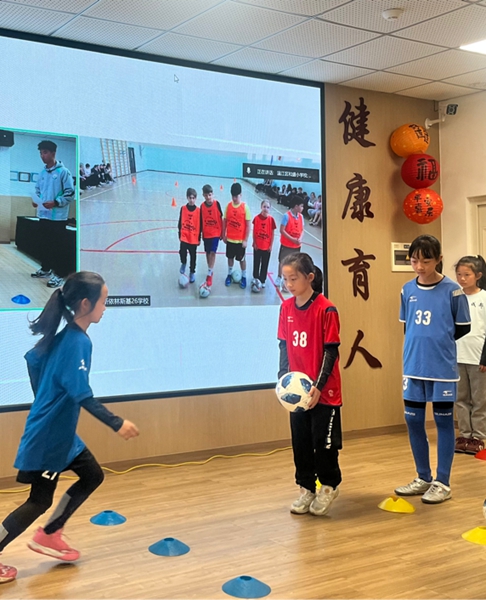 随后,双方学生结对,在教练的指导下共同学习基础足球动作。