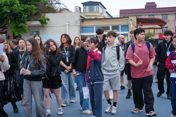 活动伊始,辰居小学校领导、学生代表与法国友人在校门口热情会面,双方亲切握手、互致问候,在翻译协助下顺畅交流,迅速拉近距离。