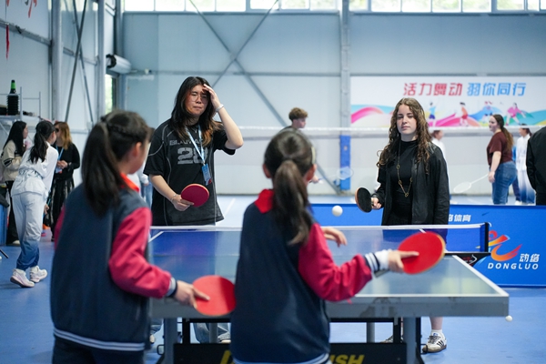体验完空竹后,代表团对中国乒乓球表现出浓厚兴趣,主动要求体验,并与辰居小学的同学们切磋球技,在运动中延续中法文化交流的友谊与互动。
