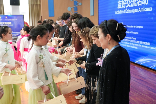 活动最后,辰居小学向法国马尔特鲁瓦学校师生代表赠送空竹与茶具,以此传递中华传统文化,也承载两校之间的深厚情谊。双方合影留念,定格下这一美好瞬间。