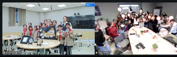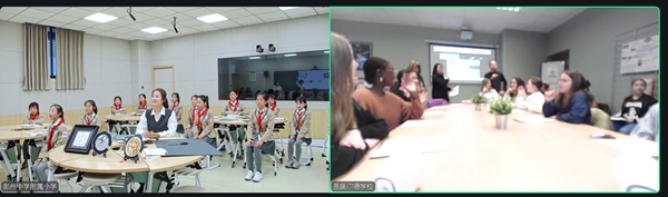 课堂氛围轻松融洽,两国孩子积极举手、热情互动。大家好奇提问、真诚分享,在一问一答中走近彼此的学习与生活,在轻松交流中拉近距离,让跨国友谊在云端悄悄发芽。