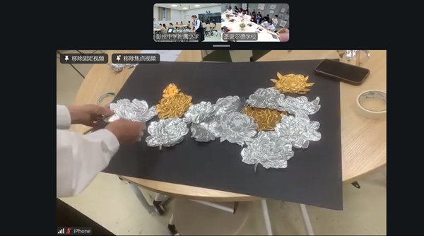 四川教育新闻成都4月10日讯(徐瑞莹 通讯员 骆影 魏怡)4月9日,彭州中学附属小学美术教师孙绰蕾,以一堂“熊猫走世界”课程——《锡韵牡丹·天彭芳华》锡纸画美育课,与比利时的师生们隔空相见,用一朵牡丹、一纸锡箔,开启了一场温暖的中外文化交流。