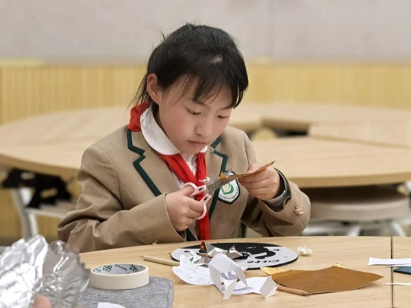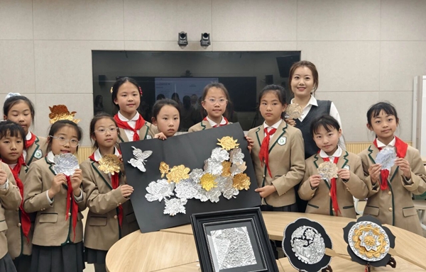 从花瓣的层叠之美,到传统锡雕工艺的巧妙创意,孩子们在观察与创作中,以指尖为笔,让锡箔绽放出牡丹的雍容与灵动,将传统锡雕工艺的巧思,化作跨越国界的艺术语言。