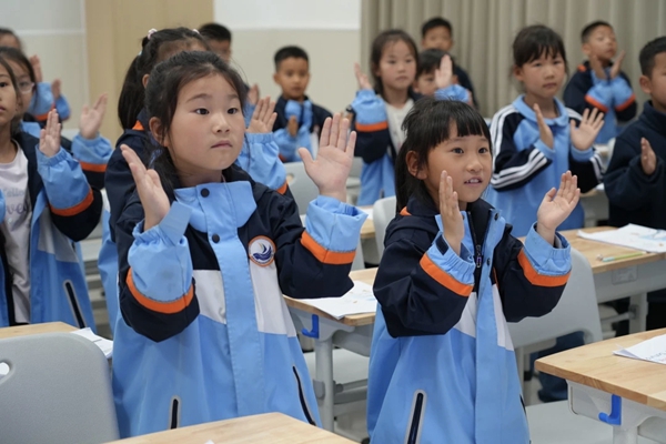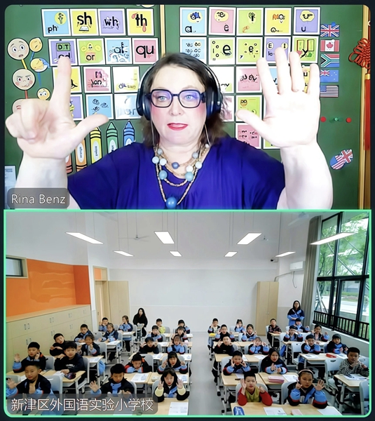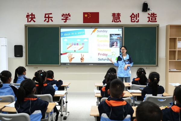 四川教育新闻成都4月14日讯(张红)双师课堂趣学习国际理解拓视野春风轻拂校园,美好悄然生长,在明媚的春光中,新津区外国语实验小学校国际理解教育课程正式开课。一年级的小朋友们迎来了第一次与外籍教师的线上互动课堂。秉承"慧见世界、慧行未来"的初心,学校为孩子们量身打造了"自然拼读启蒙+文化趣味体验"课程,在课程中播下"尊重差异、包容共生"的种子,助力孩子成长为兼具本土文化底蕴与世界眼光的"智慧少年"。本次课程采用“双师”课堂模式:线上外教Rina老师远程授课,线下本校英语王燕老师同步辅助,确保每个孩子都能获得及时的关注与指导。