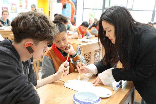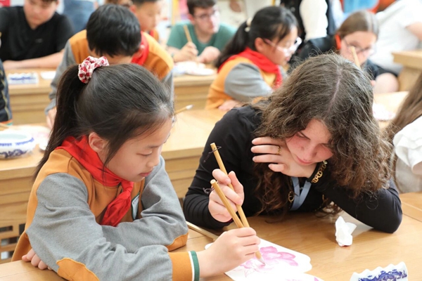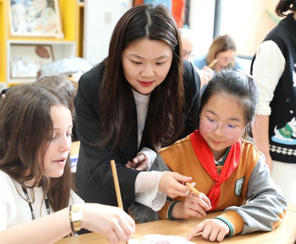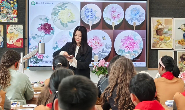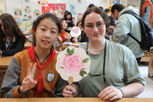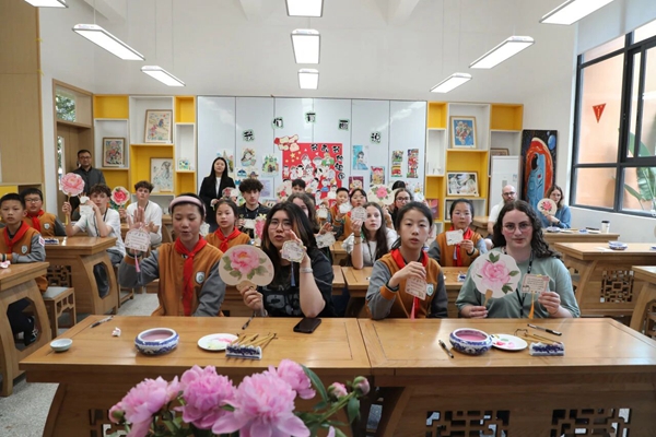 一朵牡丹,一枝鸢尾,一份友谊。这场交流没有宏大的叙,只有一个个温暖的细节:是牵起就不愿放开的小手,是操场上追逐时肆意的欢笑,是共绘一把团扇时的专注眼神,是离别时那句稚嫩的“再见,朋友”。