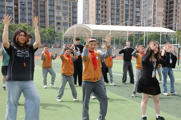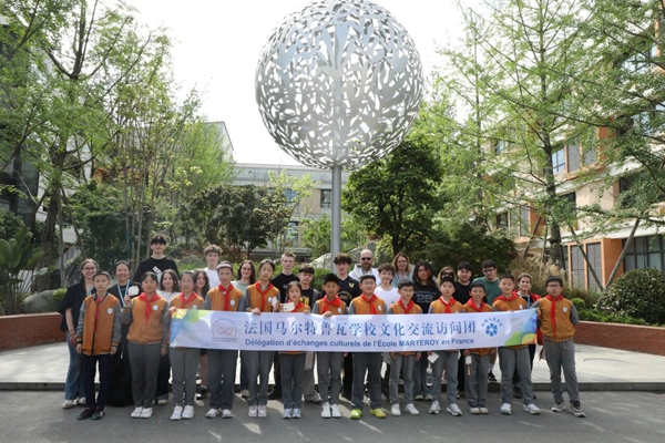 四川教育新闻成都4月15日讯(徐瑞莹 通讯员 郑丽媛 杨雨薇)4月13日,彭州中学附属小学九峰校区,空气里除了花香,还多了一丝“法国”的浪漫。一群金发碧眼的法国小客人空降校园,和附小的孩子们上演了一场跨越山海的温暖邂逅。没有隆重的排场,没有刻板的流程。只有牵起的小手、奔跑的汗水和一把画满友谊的团扇。