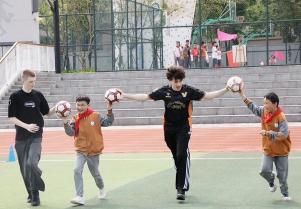 齐心协力运球赛:步调一致、默契配合,速度与团结并存,合作与快乐同行。奔跑、呐喊、鼓掌、加油……运动场上没有国界,只有纯粹的快乐与并肩的温暖。
