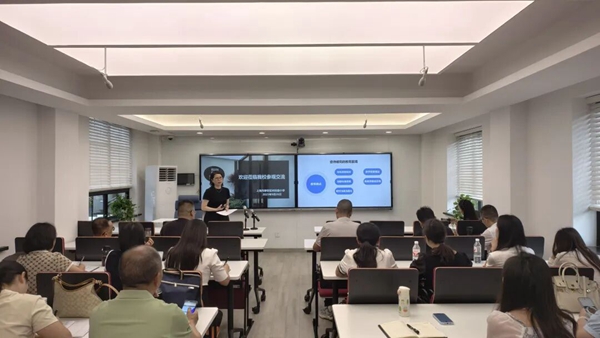研学首站,交流团走进上海师范大学附属闵行第三小学南校。在党支部书记马亚琴的引导下,教师们沿“真火”少先队空间、校训石、校史馆等点位,系统学习学校以红色文化铸魂、以“学做人”校训育人的办学特色。座谈中,马亚琴详解党建引领下传统文化与国际理解教育的融合路径,刘旭理事长强调跨区域交流的价值,为崇州特色课程建设、中外人文交流实践提供方向指引。
