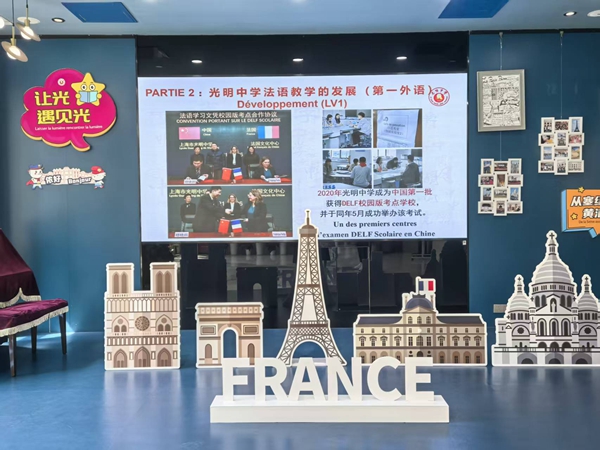 光明中学由法国人于1886年创办,始名“法文书馆”,1911年更名为“中法学堂”,实行法国学制。朱校长介绍,开设法语班一方面是传承学校的历史传统,延续中法教育交流的脉络;另一方面是顺应全球化时代对国际化人才的需求,为学生提供多元的语言学习和文化交流机会,培养具备国际视野与跨文化沟通能力的人才。