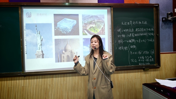 四川教育新闻成都10月23讯(张红)2025年10月24日下午,成都市温江区寿安学校7年级4班的同学们在学校未来教室内,一场跨越山河、贯通古今的“建筑之旅”正在精彩上演。在学校精心组织的国际理解教育课程——“走进世界的名胜古迹”中,同学们在四川少儿电视《阳光起跑线》钱老师的引领下,不仅领略了全球建筑的非凡魅力,更就文化遗产的保护与发展展开了深入思考与激烈辩论。