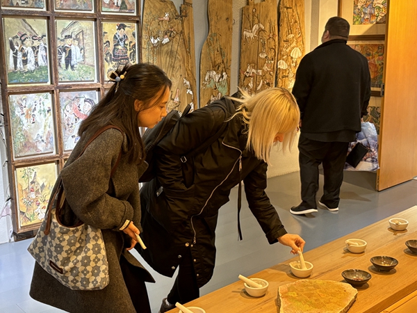 成华小学拥有三十余个风格多样的美育场馆,陈列1000余幅师生原创作品,一区域一风格、一楼层一特色,为学生打造了中华优秀传统文化多元体验空间。岩彩画、版画、面塑、汉服工作坊……明斯克州校长代表团成员每到一处,皆驻足细赏、热情交流。