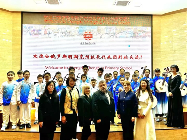 四川教育新闻成都12月12日讯(魏雅莉 通讯员 成华小学)2025年十月,成都市成华小学校与白俄罗斯鲍里索夫第25学校师生共赴交流之约,“云端”相聚,以“中白峨眉武术课间操”线上展示活动,续写跨国情谊。12月8日上午,成都市成华小学校迎来白俄罗斯明斯克州校长代表团,一场以“非遗体验”为主题的交流活动在此温情启幕。