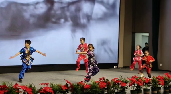 随后,两校学生先后登台,呈现了精彩纷呈的才艺展示。牧山新城小学子牧童声合唱团演唱了《黑猫警长》《兰花草》等歌曲,展现了中华文化的韵味与童真;法国学生则表演了中文春节童谣和合唱《让我们一起说“你好”》,赢得阵阵掌声。此外,中方师生联袂献上的民族舞蹈与武术表演,刚柔并济,彰显了中华传统文化的独特魅力。